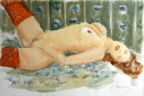 This figure painting using watercolour was created from a live model which has become part of my weekly routine as an artist. There is a definite energy and excitement that comes as I work directly from the figure. In this study I am not so concerned about complete accuracy as I am to reacting to the pose and the space around it, as well as the light that is cast upon it.